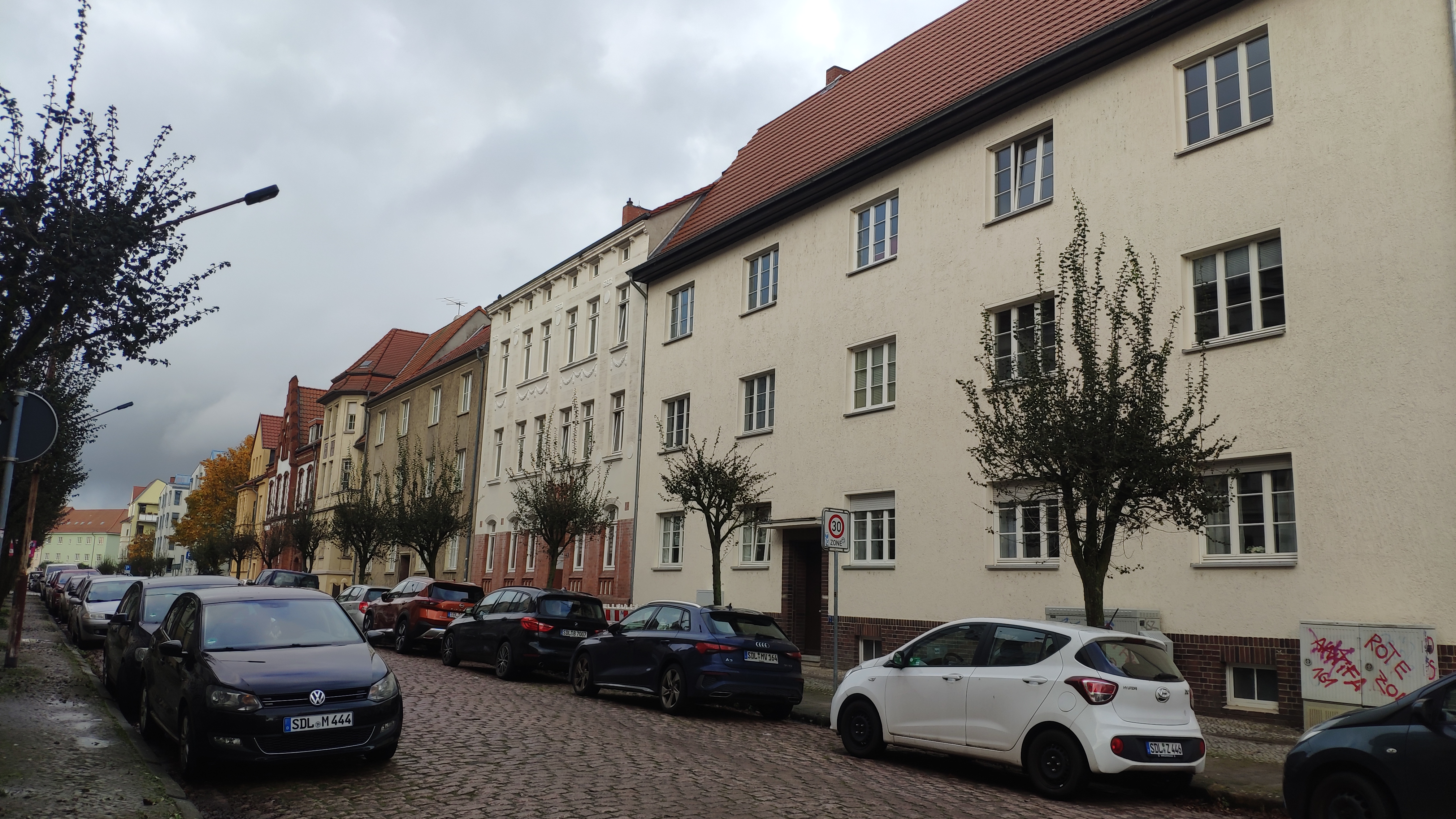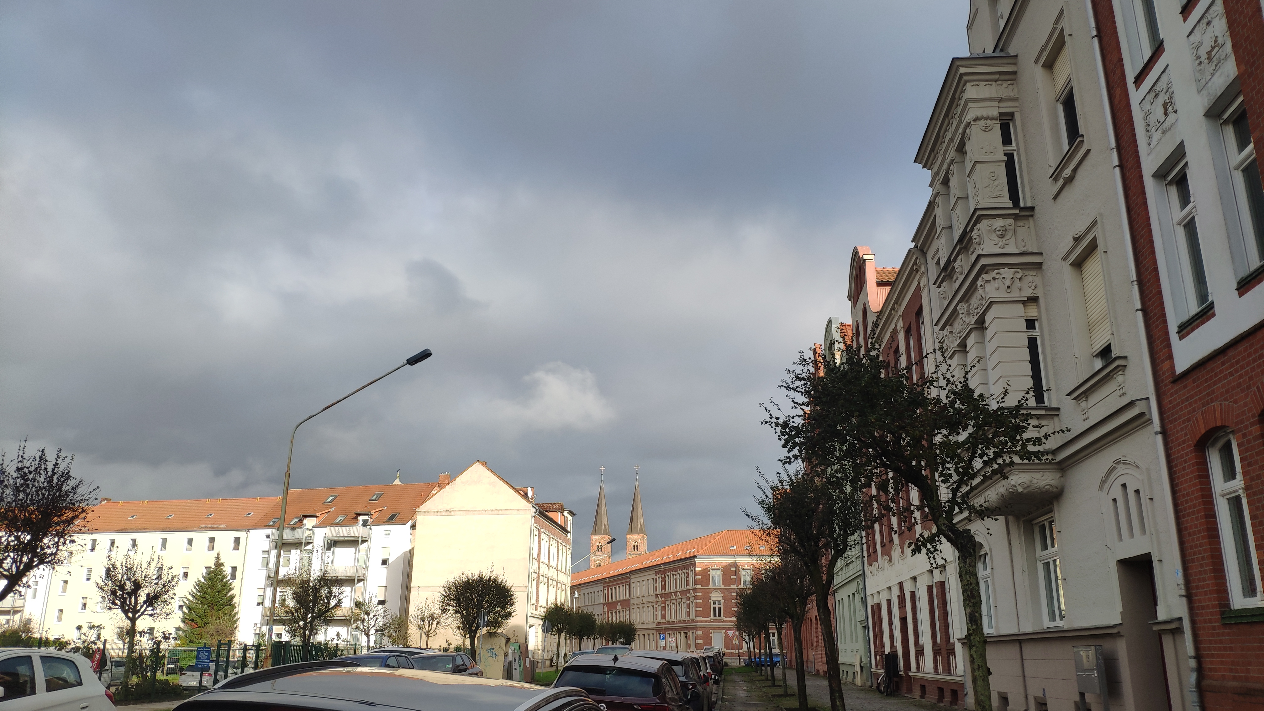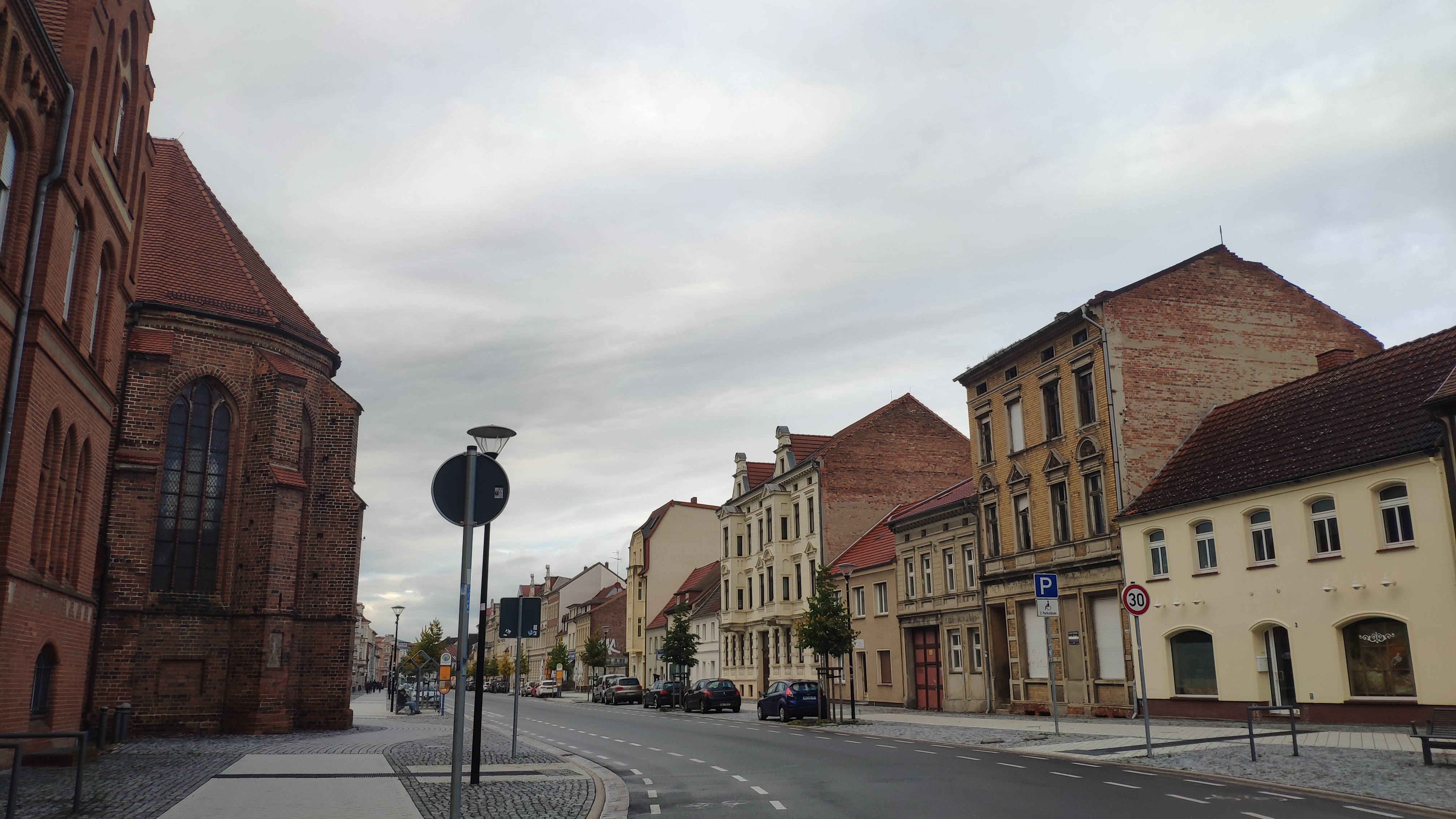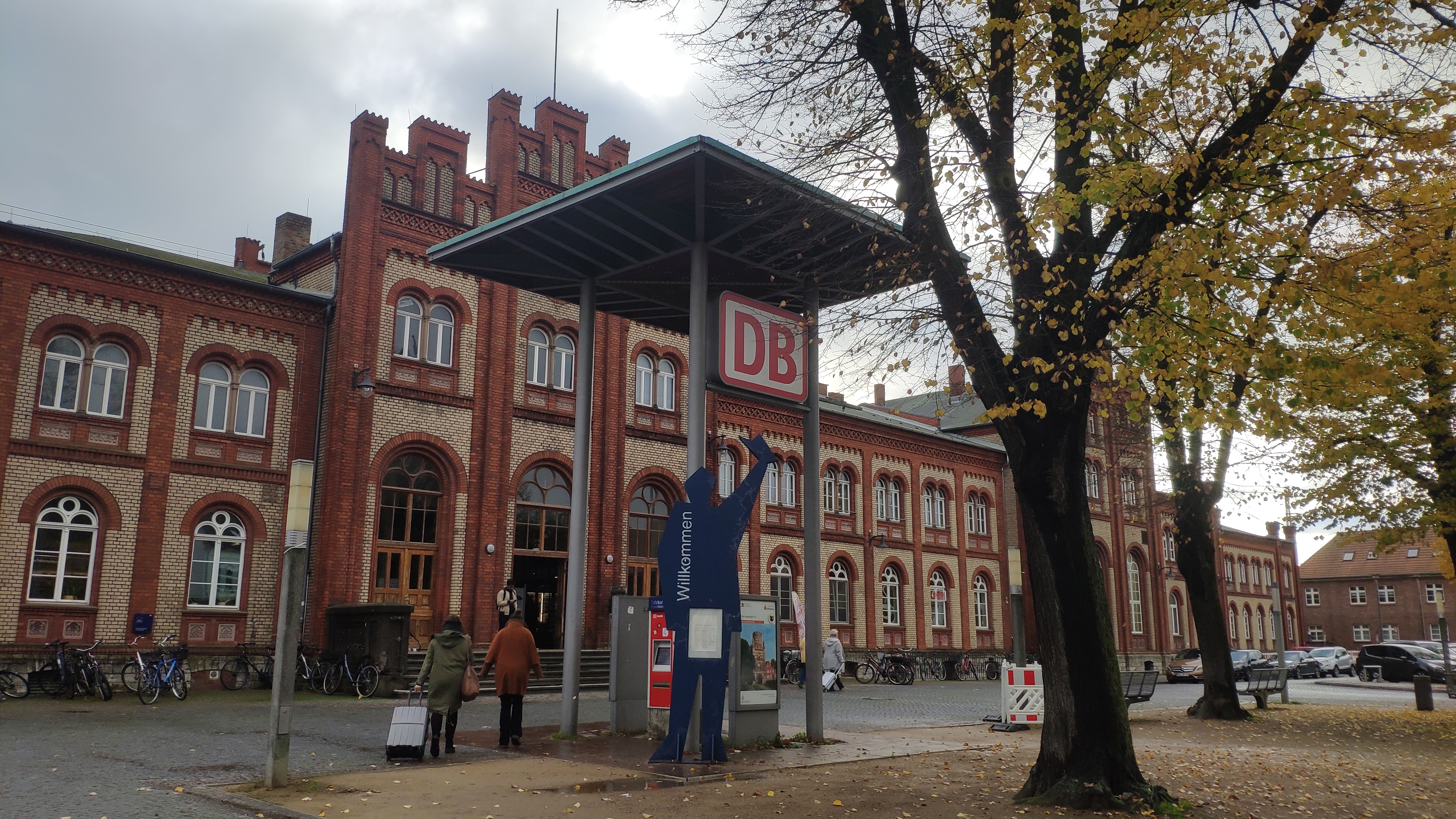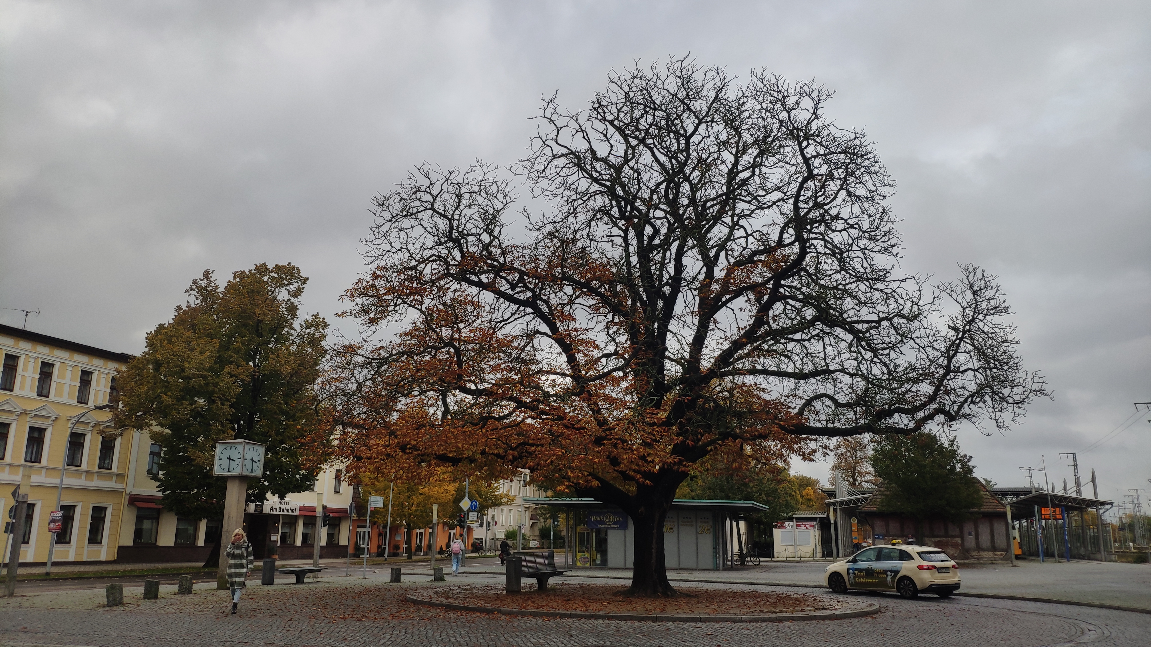 月底的时候忽然想,我这个月都没出过门,我的月票就完全浪费了啊,更心痛。于是去了一趟柏林的亚超,又去了一趟柏林参加活动。但是这两趟加起来完全不足以抵消 49 欧啊,还是心痛。于是想起月初在天气预报的降雨地图里看到的一个地方,那时候查了一下路线,不算麻烦,就打算去一趟抵消月票,但是一直懒得出门。终于在十月快过去的时候出门了,虽然天气一直不太好。再查了一下车次,虽然是周六,但是车次完全没有变化,幸好(德国交通班次会随时间变化而变化,工作日工作时间段班次最多)。换乘 2 次,总耗时 2 小时。加上早上还时不时有太阳,我前一晚也睡得很好,于是中午起来做饭吃完,就出门了。