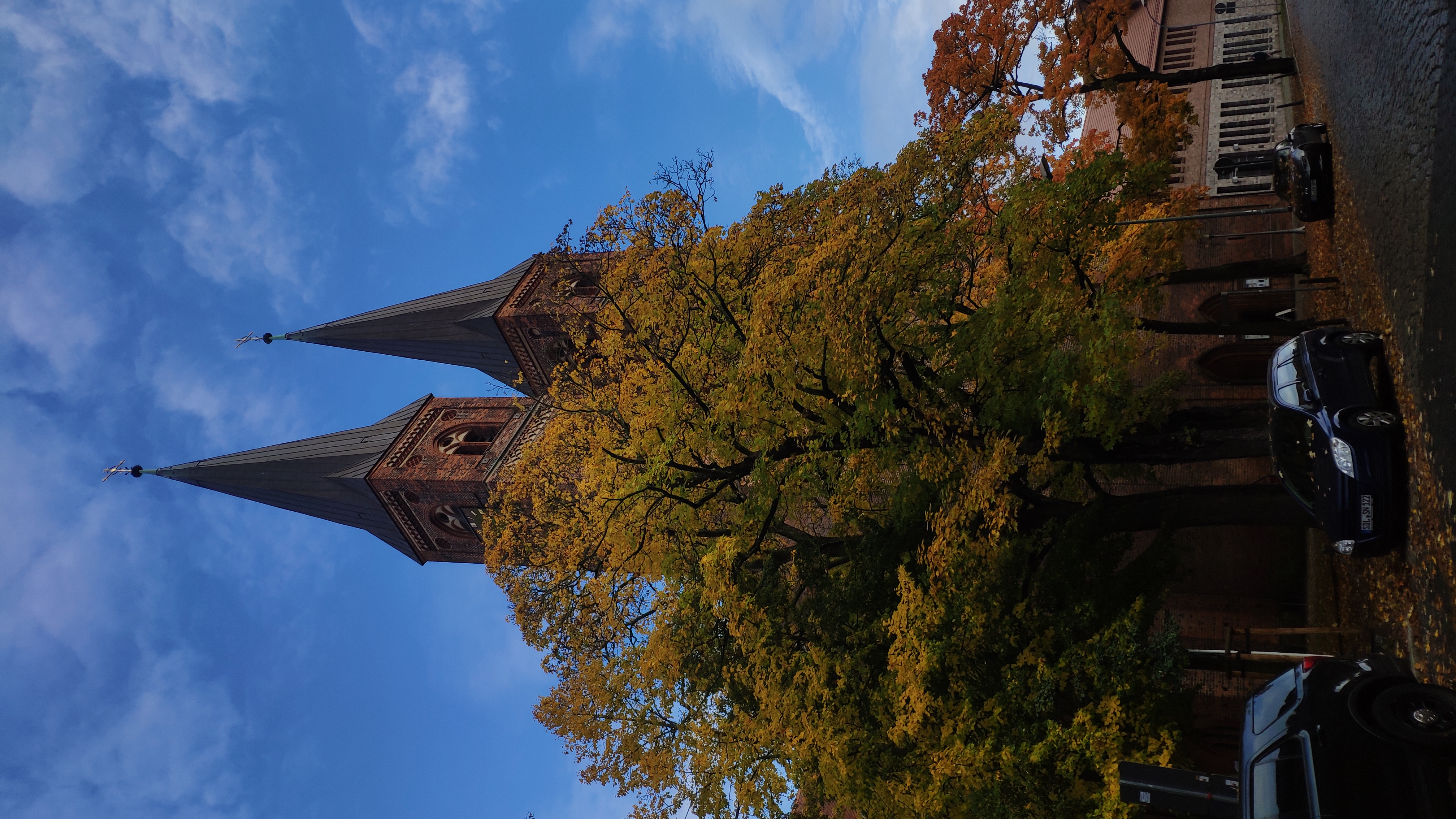 很快,就到了教堂。外观看起来,红墙还是很好看的。加之附近很多树叶都黄了,就更美了。还看到两辆挺好看的车、但是在国内见不到的车。夏天的时候,很多人开着敞篷车在路上,看着就很爽。