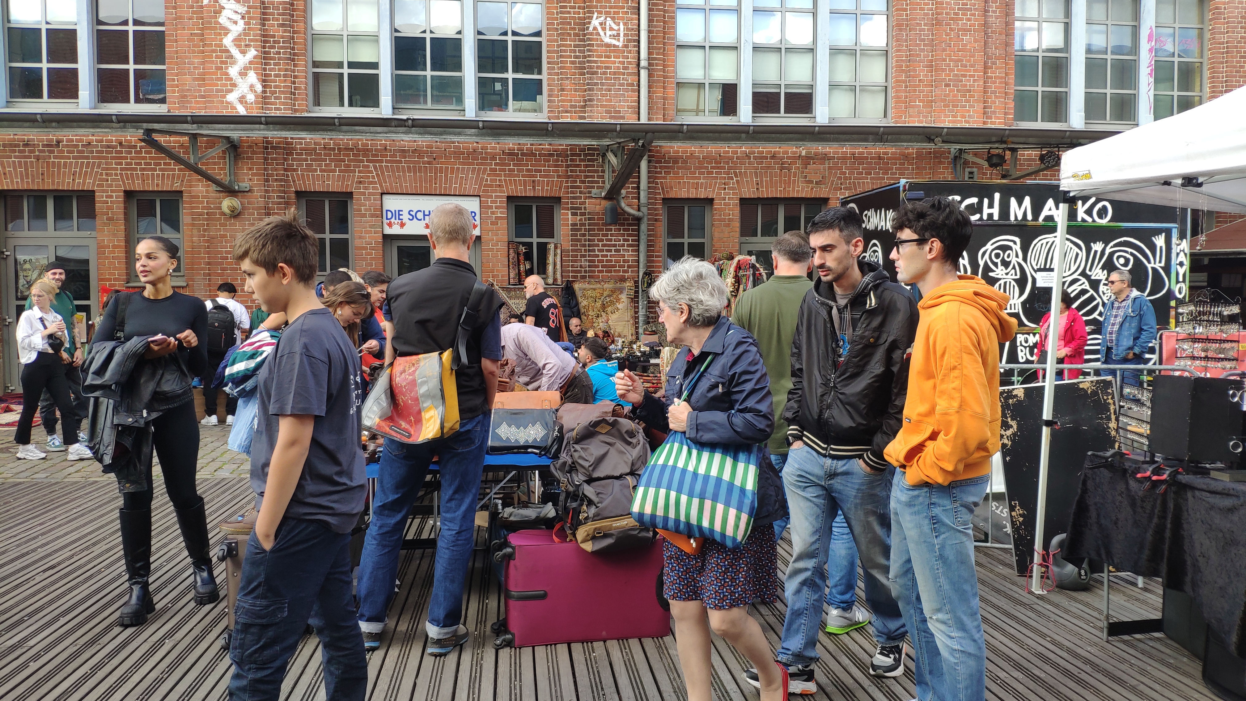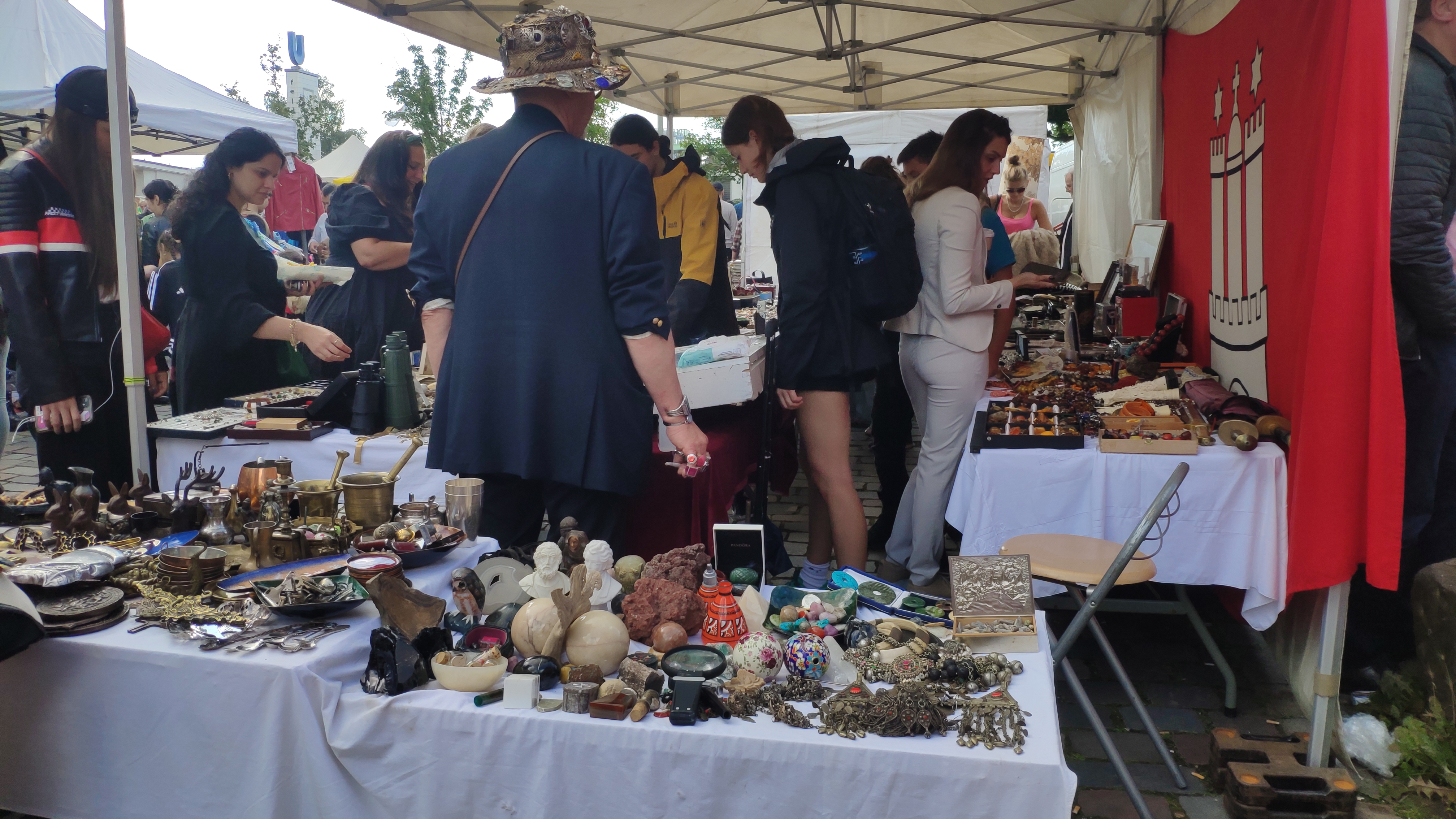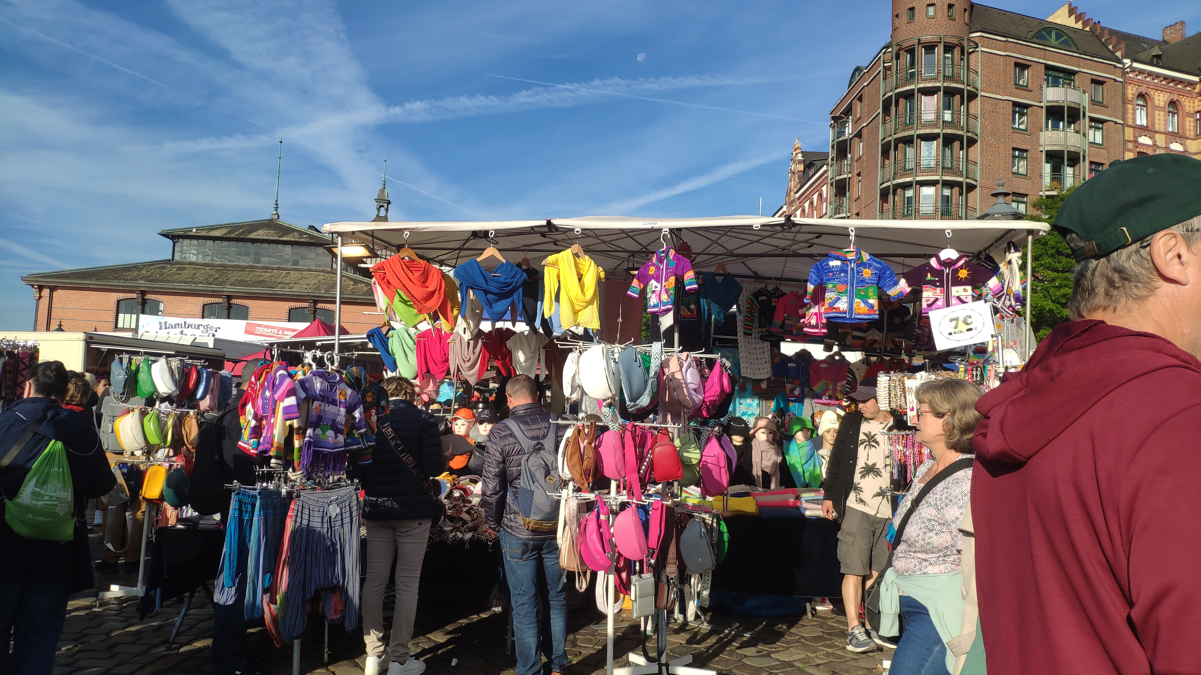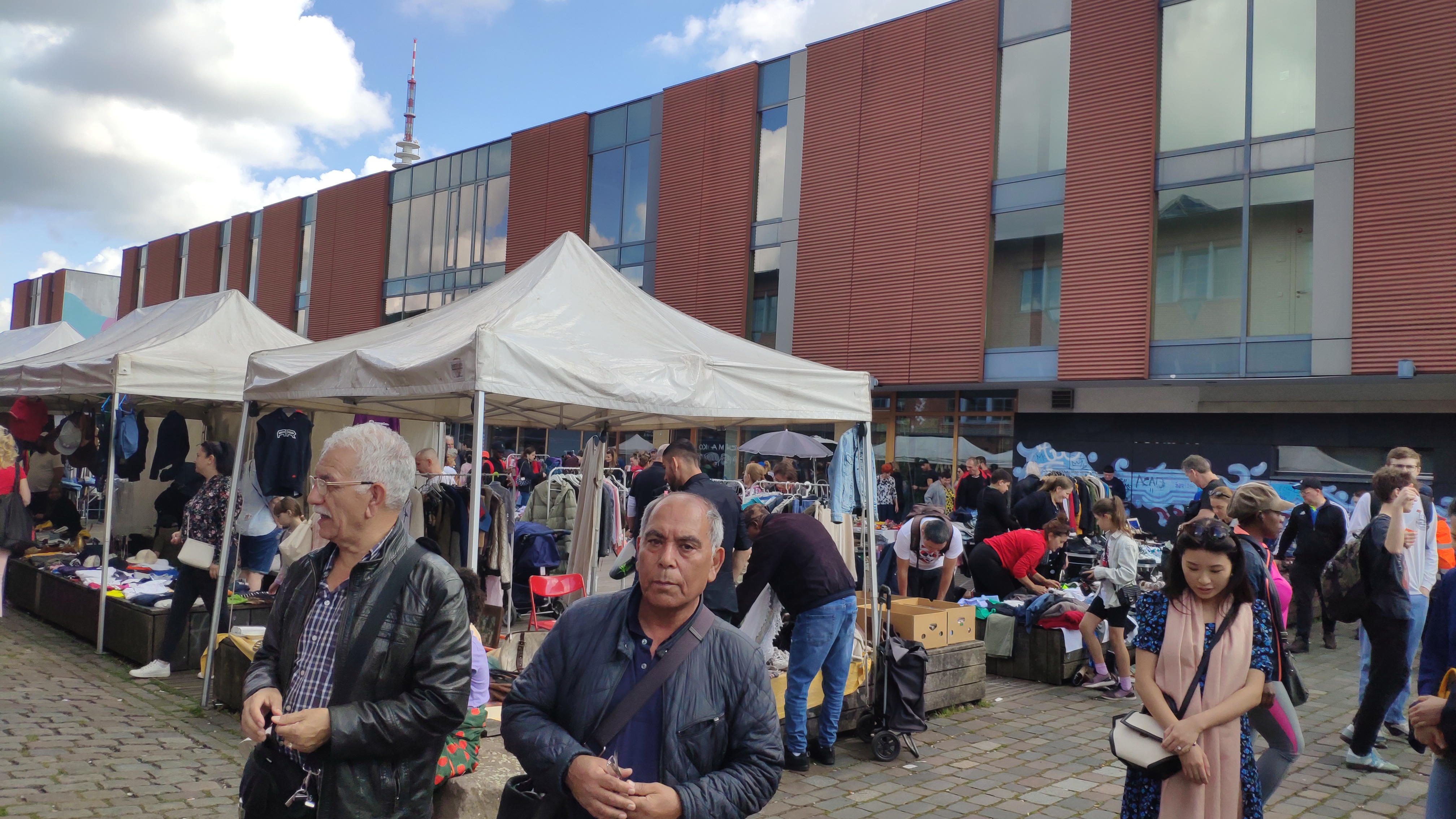 离开优衣库,我们去了一个周末跳蚤市场。衣物服饰基本是二手货,摆在外面的摊档基本是中东人和非洲人。往里走,小部分是本地年轻女性,她们的货品会相对好看很多。有部分商品应该来自义务市场,特别是一些配饰什么的,几欧一根手绳之类。我和 Y 说,我们中国进货来这里摆摊就能赚钱啊。