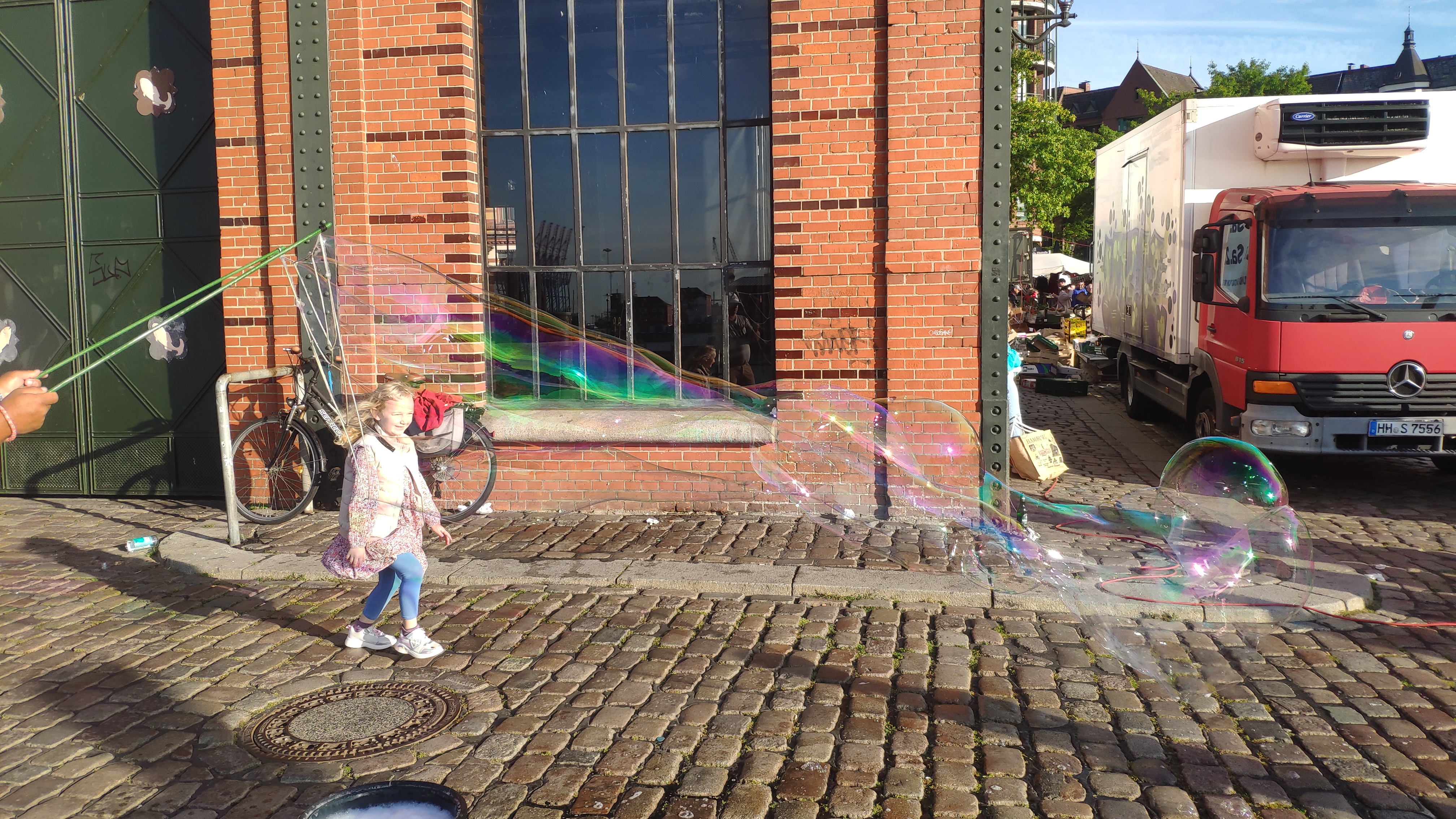 一开始我不明白这些大叔为什么在玩泡泡,后来发现他们前面有收小费的盒子,基本都是小朋友在玩,然后打赏。