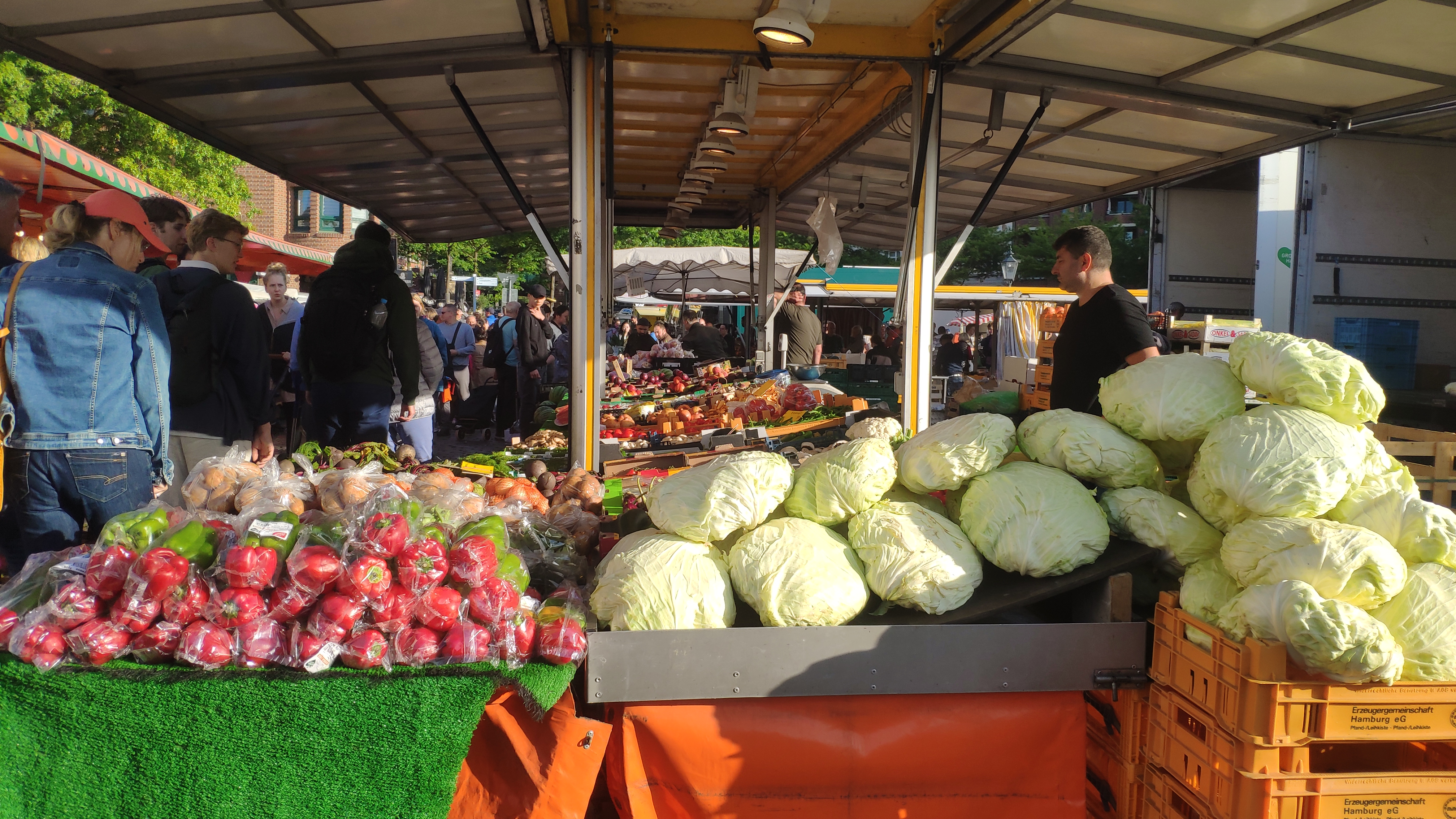 Y 说汉堡每个周日有鱼市,临近闭市的时候,东西都会大甩卖,她之前就花很少钱买了很多水果。于是,我俩就早起地铁转水巴,带着惺忪的睡眼坐车。