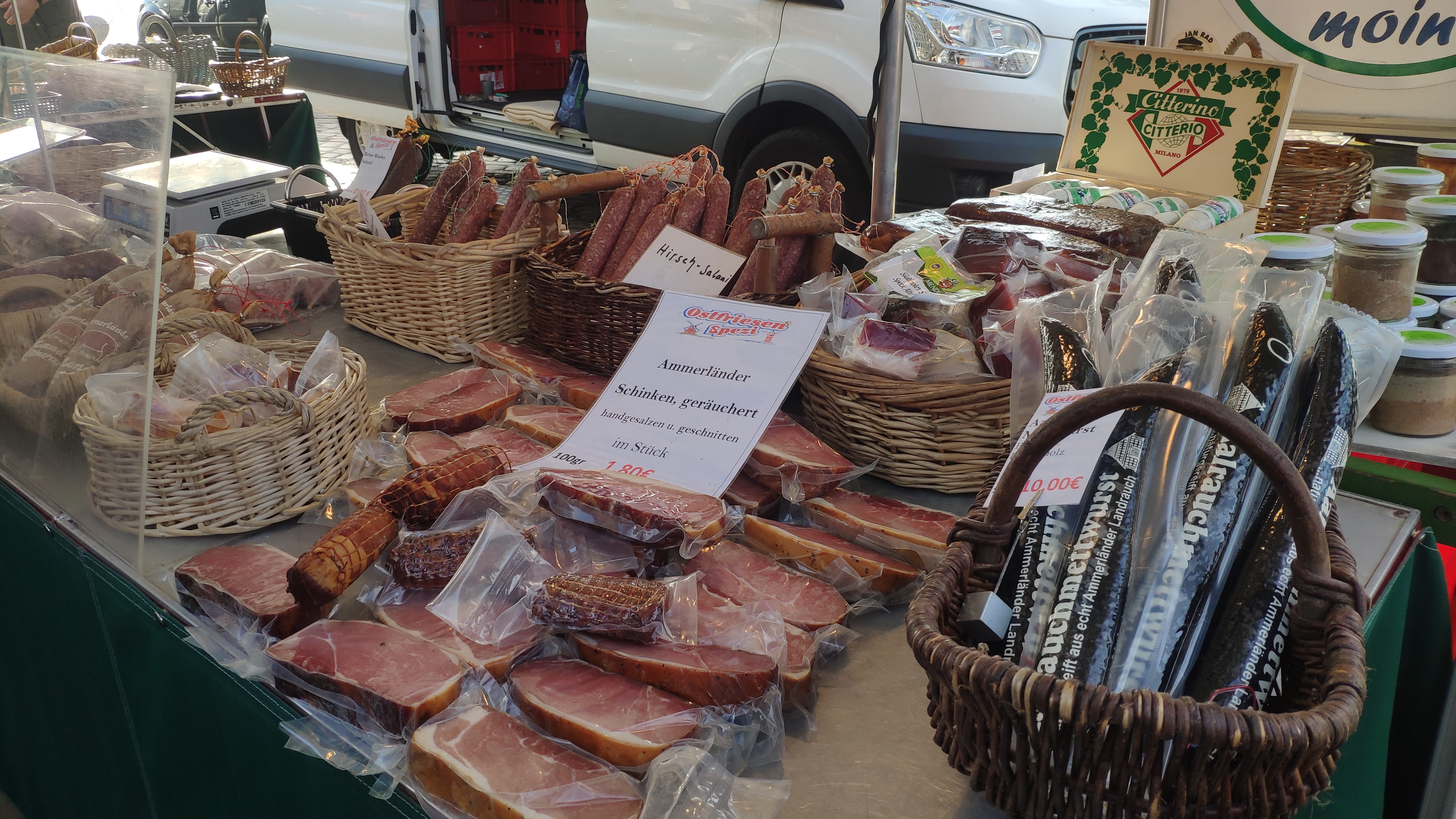 我们一直闲逛,等到九点多,就很多人开始大甩卖了。我们转了几圈,很多摊位基本是水泄不通。果蔬的力度蛮大,西瓜一欧一个,小纸盒芒果两欧,诸如此类。我们买了草莓,芒果,西瓜,青椒,蘑菇,虾。海鲜打折力度不是很大,而且基本是冰冻海鲜。德国人是坚持不打折的,即使他们原价就比别人高。