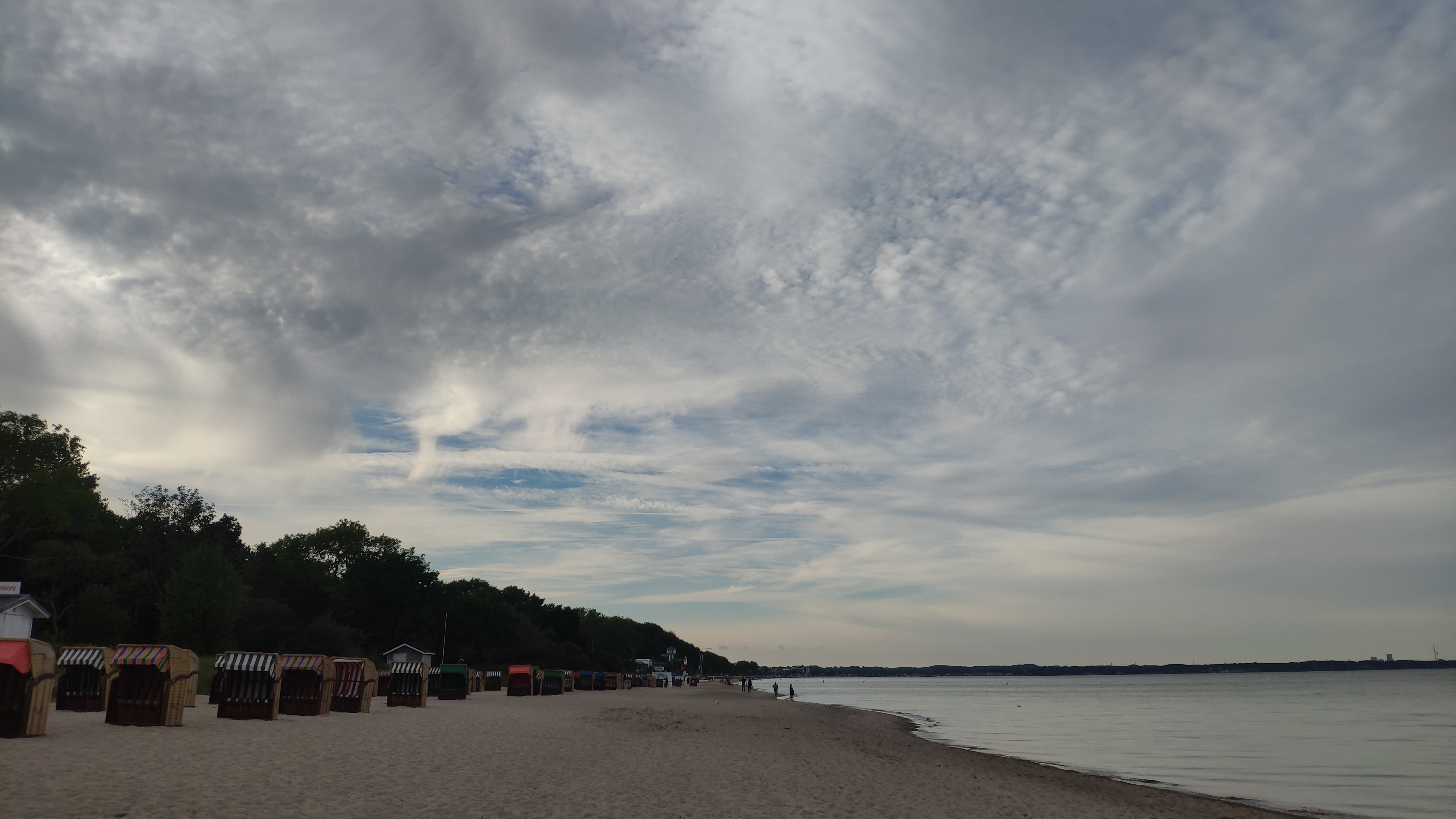 但是运气不太好,傍晚云有点厚,而且,海面对着东边……大概是周日,也有点冷,沙滩上很少人。远处不知道是酒吧还是什么,开着震天的 DJ。海水很漂亮,有几个人在裸泳。夏天在这里游泳一定很舒服吧。
